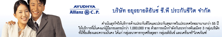 บมจ. อยุธยา อลิอันซ์ ซี.พี. ประกันชีวิต เป็นบริษัทประกันชีวิตชั้นนำของประเทศไทย ก่อตั้งขึ้นจากการเข้าร่วมเป็นพันธมิตรระหว่าง 3 กลุ่มบริษัทที่มีชื่อเสียงและความมั่นคงอันได้แก่ กลุ่มธนาคารกรุงศรีอยุธยา กลุ่มอลิอันซ์ และเครือเจริญโภคภัณฑ์ บริษัทฯ ได้สร้างสรรค์รูปแบบผลิตภัณฑ์ประกันแบบแปลกใหม่และครบถ้วน เพื่อตอบสนองความต้องการที่หลากหลายของลูกค้ารายบุคคลและองค์กร อันได้แก่ แบบประกันภัยคุ้มครองตลอดชีพ แบบประกันภัยเพื่อการสะสมทรัพย์และเพื่อเป็นทุนการศึกษาสำหรับบุตรหลาน แบบประกันภัยคุ้มครองอุบัติเหตุ แบบประกันภัยคุ้มครองสุขภาพ และแบบประกันภัยเพื่อสวัสดิการพนักงาน ปัจจุบันเป็นผู้นำการตลาดติดอันดับหนึ่งในสามบริษัทประกันชีวิตที่ใหญ่ที่สุดของประเทศในด้านเบี้ยประกันภัยรับรวม บริษัทฯ ได้รับความไว้วางใจจากผู้ถือกรมธรรม์ทั่วประเทศกว่า 1,000,000 ราย และดำเนินธุรกิจในประเทศไทยมานานกว่า 55 ปี ที่อยู่ อาคารพหลโยธินเพลส ชั้ 27 ห้อง 2720 ถ. พหลโยธิน พญาไท กรุงเทพมหานคร 10400 โทร 02-6190418,087-6838977,086-5658688 | แฟกส์ 02-619-0418 |