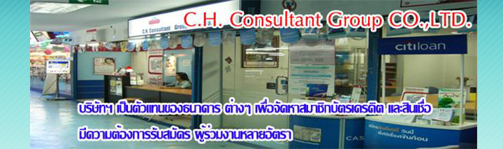 บริษัท C.H.Consultant Group เป็นผู้กำเนิดธุรกิจด้านตัวแทนจัดหาสมาชิก สินเชื่อและบัตรเครดิต,ประกันภัยรถยนต์ เรามีประสบการณ์ ธุรกิจต่อเนื่องกว่า 10 ปี เป็นสิ่งยืนยันความพร้อมด้วยองค์ประกอบดังนี้ 1.ระบบการจ่ายค่าตอบแทน (Commission) -ทางเรามีระบบการจ่ายค่าตอบแทน (Commission) ที่ถูกต้องและตรวจสอบได้ ด้วยการจ่ายค่า (Commission) เป็นรายอาทิตย์ หรือเลือกเป็นแบบรายเดือนก็ได้ 2.ระบบการตรวจสอบผลงานการขาย (Sale Report) -ตรวจสอบผลงานการขาย ผ่านwww.creditonhand.com - ตรวจสอบผลงานการขายผ่านโปรแกรม C.H. Multi Credit System - ตรวจสอบผลงานการขาย ผ่านระบบ VPN (realtime report) เหมาะสำหรับหัวหน้าทีมขาย,office พันธมิตรธุรกิจ - จัดส่งข้อมูล update ทาง SMS อย่างต่อเนื่อง ซึ่งสามารถรองรับการตรวจสอบที่ถูกต้อง รวดเร็ว ได้อย่างมั่นใจภายใต้สโลแกน"We make your business a success" **พิเศษ** - สำหรับนักขายที่มีประสบการณ์ด้านงานสินเชื่อและบัตรเครดิตสามารถติดต่อโดยตรงได้ที่ คุณกฤษณ์ โทร 086-3187130 เราพร้อมยินดีรับเงื่อนไข และนำเสนอผลตอบแทนที่ดีสำหรับท่านแน่นอน ที่อยู่ 999 หมู่1 ห้างอิมพีเรียลเวิล์ดสำโรง ชั้น 4 ติดกับไอทีซิตี้ ห้อง R002,R003 ถ.สุขุมวิท ต.สำโรงเหนือ อ.เมืองฯ สมุทรปราการ 10270 โทร 086-3187130 | แฟกส์ 02-756-8923 |