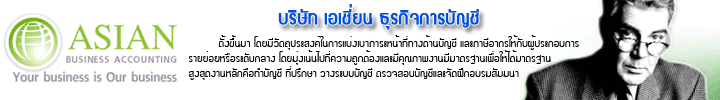 เอเชี่ยน ธุรกิจการบัญชี ตั้งขึ้นมา โดยมีวัตถุประสงค์ในการแบ่งเบาภาระหน้าที่ทางด้านบัญชี และภาษีอากรให้กับผู้ประกอบการรายย่อยหรือระดับกลาง โดยมุ่งเน้นไปที่ความถูกต้องและมีคุณภาพงานมีมาตรฐาน เพื่อให้ได้มาตรฐานสูงสุด งานหลักคือทำบัญชี ที่ปรึกษา วางระบบบัญชี ตรวจสอบบัญชี และจัดฝึกอบรมสัมมนา ที่อยู่ 18 พหลโยธินซอย24 ถนนพหลโยธิน แขวงจอมพล เขตจตุจักร กรุงเทพมหานคร กรุงเทพมหานคร 10900 โทร 029303859,025126088 | แฟกส์ 025121579 |