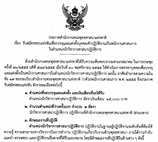 สำนักงานพระพุทธศาสนาแห่งชาติ รับสมัครสอบแข่งขันเพื่อบรรจุและแต่งตั้งบุคคลเข้าปฏิบัติงาน ตำแหน่ง นักวิชาการศาสนาปฏิบัติการ จำนวน 2 อัตรา ตั้งแต่วันที่ 15 มิถุนายน - 3 กรกฎาคม 2558![]() สำนักงานพระพุทธศาสนาแห่งชาติ รับสมัครสอบแข่งขันเพื่อบรรจุและแต่งตั้งบุคคลเข้าปฏิบัติงาน ตำแหน่ง นักวิชาการศาสนาปฏิบัติการ จำนวน 2 อัตรา ตั้งแต่วันที่ 15 มิถุนายน - 3 กรกฎาคม 2558 ![]() ![]() รายละเอียดเพิ่มเติมคลิกที่นี่ |