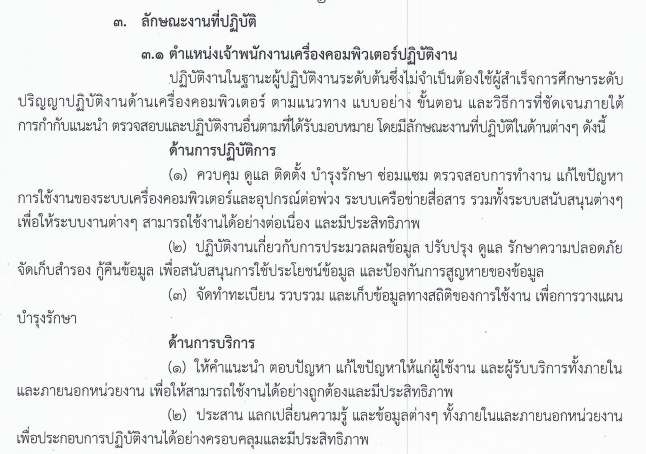 ตำแหน่ง เจ้าพนักงานเครื่องคอมพิวเตอร์ปฏิบัติงาน เงินเดือน 11,500-12,650 บาท วุฒิ ลักษณะงาน |